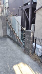 裏側にお住いの方へお声がけし敷地をお借りしつつの作業となります。