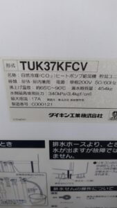 既存給湯器はダイキンTUK37KFCV スリム型です。現在ダイキンにはスリム型の作りが無いため、代替えには長府エコキュートスリム型にてご提案しています。
