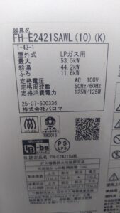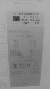 静岡県焼津市にてパロマFH-E2421SAWL(K)の入替え工事